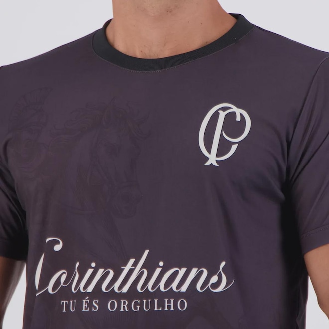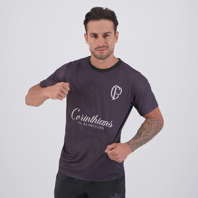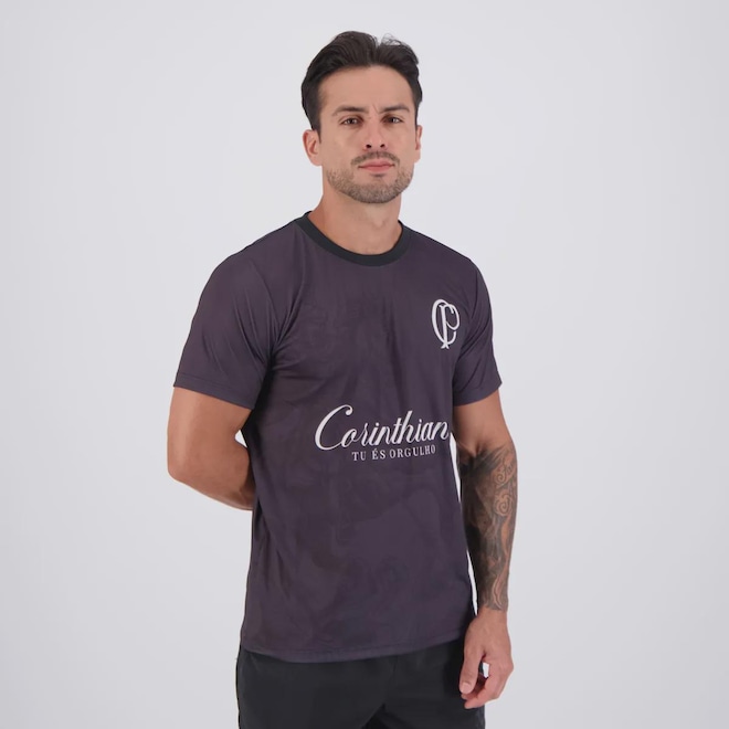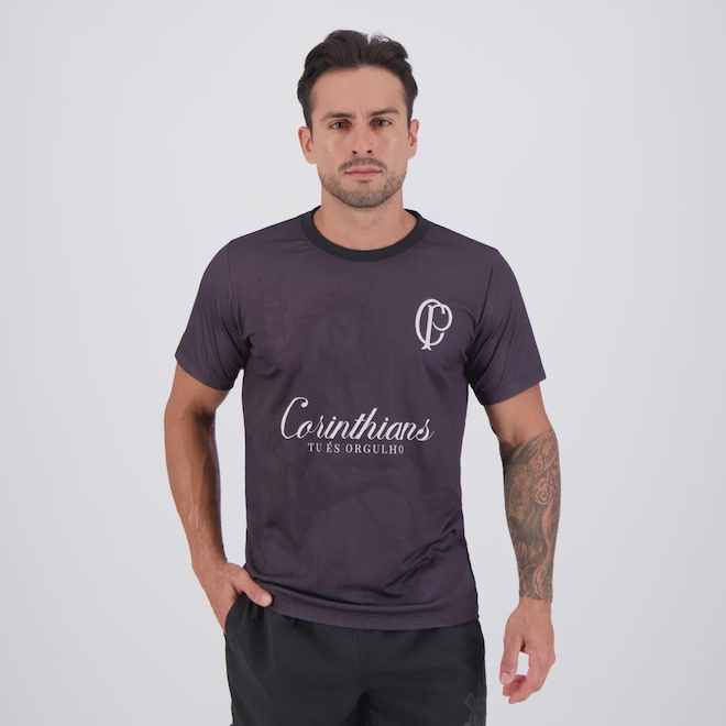 Composição: 100% Poliéster Cor predominante: Preta Indicado para: Casual Gênero: Masculino Escudo: Estampado Manga: Curta Gola: Careca Dimensões aproximadas (A x L): P: 70 x 54 cm M: 72 x 57 cm G: 75 x 58 cm GG: 77 x 59 cm