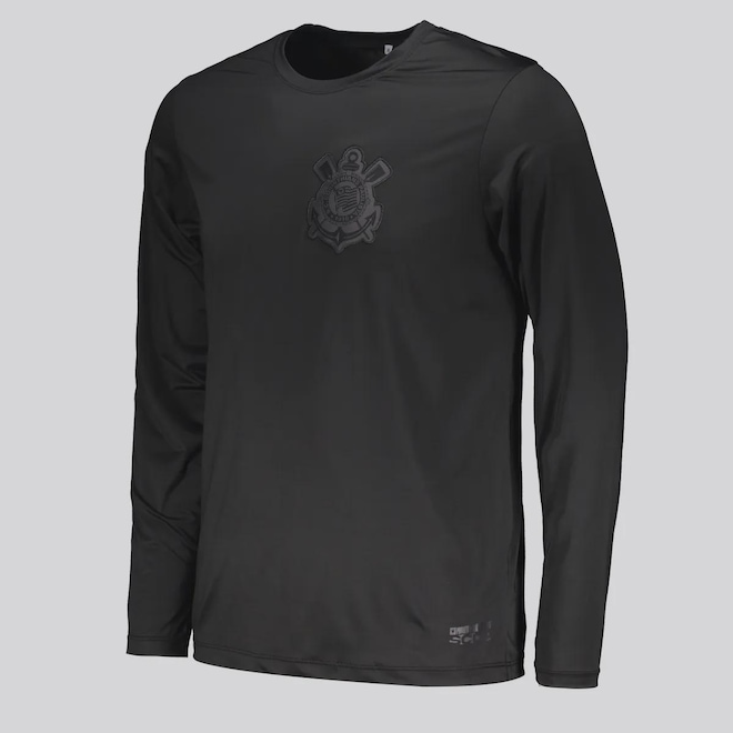 Composição: 88% Poliéster e 12% Elastano Cor predominante: Preta Indicado para: CasualClube: CorinthiansOrigem: NacionalEscudo: BordadoManga: LongaGola: CarecaDimensões aproximadas (A x L):P: 67 x 47 cmM: 69 x 49 cmG: 71 x 51 cmGG: 73 x 53 cmEG: 75 x 55 cm