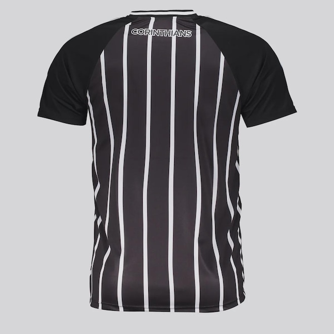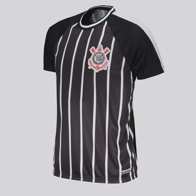 Composição: 100% Poliéster Cor predominante: Preta Clube: Corinthians Gênero: MasculinoOrigem: NacionalEscudo: BordadoManga: CurtaGola: CarecaDimensões aproximadas (A x L):P: 68 x 51 cmM: 70 x 53 cmG: 72 x 55 cmGG: 74 x 57 cmEG: 76 x 59 cm