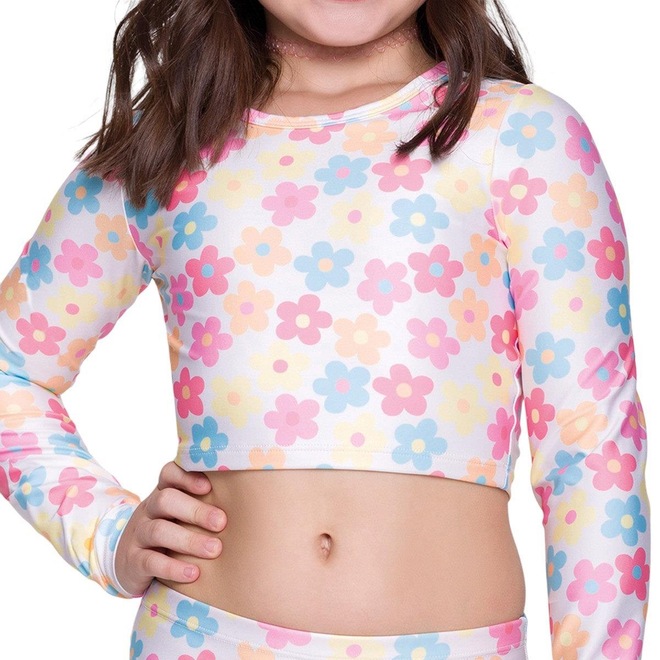 A Camisa Cropped Selene Manga Longa Juvenil é confeccionada em poliéster e elastano, oferecendo conforto e flexibilidade para o dia a dia das pequenas. Com proteção UV50+, garante segurança extra contra os raios solares, ideal para momentos ao ar livre. O modelo possui manga longa, agregando mais proteção e um toque charmoso ao visual. A gola redonda e a modelagem cropped dão um ar moderno e descolado à peça. Com design alegre e estampa divertida, essa camisa é perfeita para compor looks descontraídos e cheios de estilo para qualquer ocasião. Medidas aproximadas (cm): 10: 33x29x48 / 12: 35x31x50 / 14: 37x33x52 / 16: 39x35x54 (Largura x Comprimento x Manga.)
