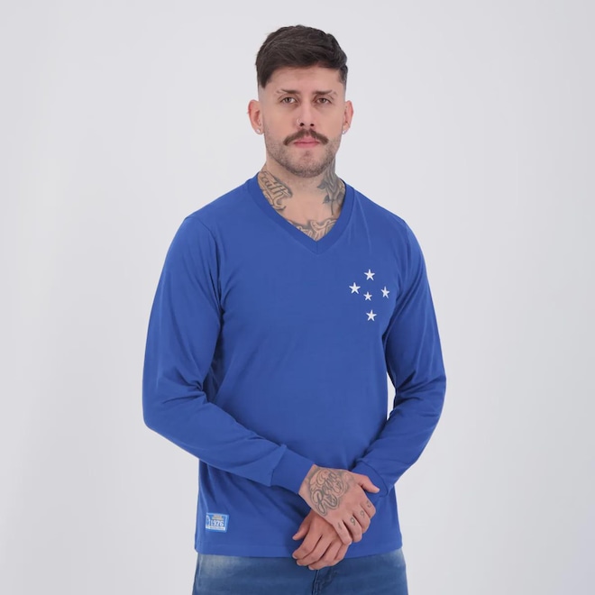 Composição: 100% Algodão Cor Predominante: Azul Gênero: Masculino Origem: Nacional Escudo: Bordado Clube: Cruzeiro Manga: Longa Gola: Careca Dimensões aproximadas (A x L): P: 70 x 51 cm M: 72 x 53 cm G: 74 x 55 cm GG: 76 x 57 cm EG: 78 x 59 cm