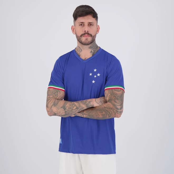 Composição: 100% PoliésterCor predominante: Azul Indicada para: TreinoGênero: MasculinoOrigem: NacionalLogo: BordadaManga: CurtaGola: VDimensões aproximadas (A x L):P: 70 x 50 cmM: 72 x 53 cmG: 74 x 55 cmGG: 77 x 59 cmEG: 80 x 62 cm