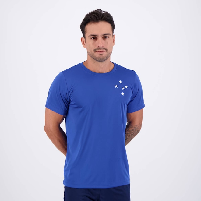 Composição: 100% Poliéster Cor predominante: Azul Indicado para: Casual Gênero: Masculino Origem: Nacional Escudo: Bordado Clube: Cruzeiro Manga: Curta Gola: Careca Dimensões aproximadas (A x L): P: 72 x 54 cm M: 73 x 55 cm G: 75 x 58 cm GG: 77 x 59 cm