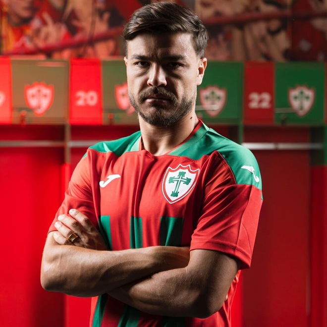 O manto titular da Lusa produzido pela marca Joma para a temporada 2025 é predominantemente vermelho e traz linhas verticais em verde, alternadamente, pelo corpo.