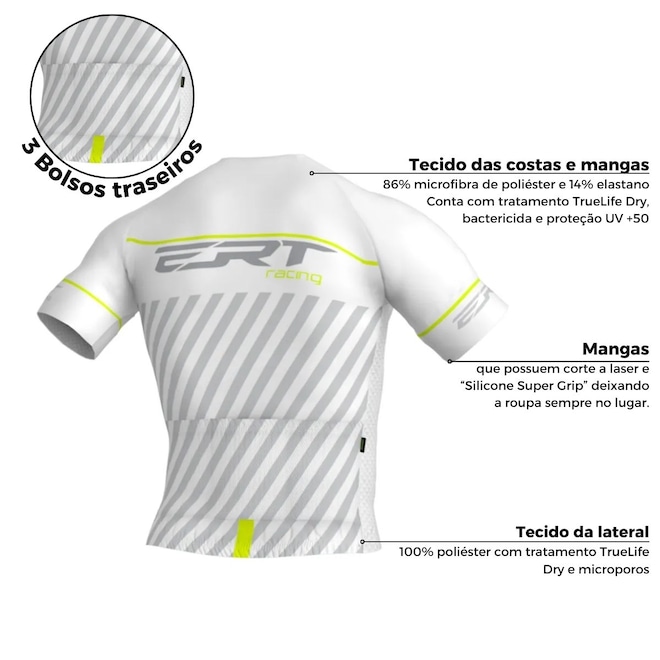 A camisa ciclismo ERT Elite Racing White é um produto pensado e desenvolvido para atletas profissionais. A modelagem padrão europeu garante conforto de performance nos mais altos níveis de competições.