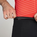Possui modelagem ergonômica com tira em silicone na barra elástica que confere mais aderência junto ao corpo, além de três bolsos traseiros e fechamento em zíper.