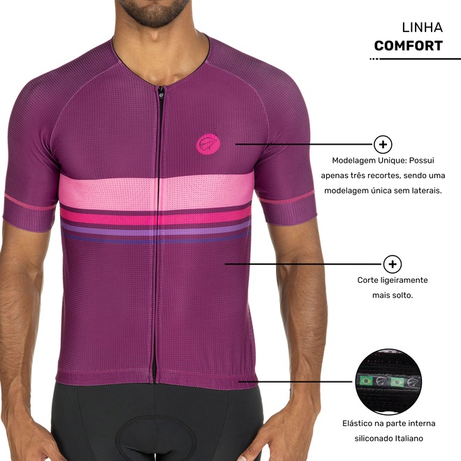 Da linha Comfort, a Camisa de Ciclismo Mauro Ribeiro Horizon possui baixa compressão, ideal para quem está iniciando no ciclismo ou em passeios e treinos de curta distância.