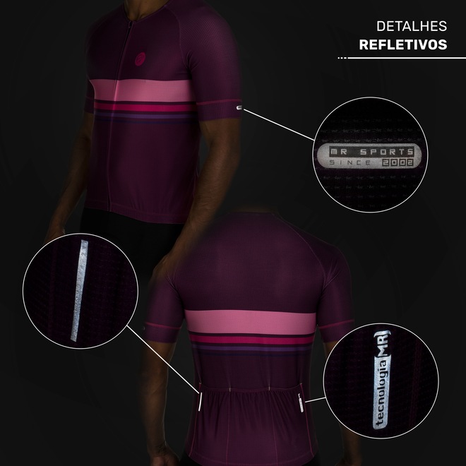 Apresenta fechamento em zíper, barra elástica com acabamento siliconado para mais aderência durante o pedal e detalhes refletivos que aumentam a segurança do ciclista em baixa visibilidade.