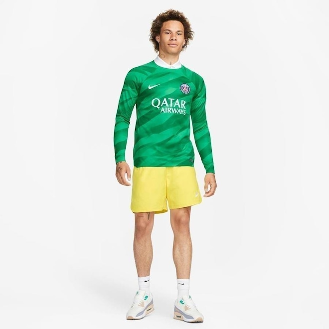 - Sobre o produto - Camisa de Goleiro Paris Saint-Germain 2023/24 Nike - Masculina- Camisa de Goleiro Paris Saint-Germain 2023/24 Nike - Masculina Vista-se como seu goleiro favorito com esta camisa Paris Saint-Germain. A nossa coleção Stadium combina detalhes da camisa de réplica com tecnologia antissuor para oferecer um look pronto para o jogo e inspirado no seu time favorito. Benefícios O tecido ventilado com tecnologia Nike Dri-FIT absorve o suor da sua pele e proporciona uma evaporação mais rápida para manter seu corpo seco e confortável. O design de réplica apresenta detalhes baseados no que os craques usam. Detalhes do Produto 100% poliéster Lavável à máquina Importado - ref: M0ZCCS