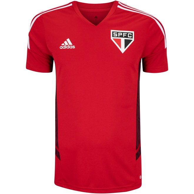 As partidas de futebol serão completadas com a camisa de treino Atletas. Especialmente para os apaixonados pelo São Paulo, a camisa adidas é uma ótima opção para realizar atividades físicas e até mesmo composições casuais.