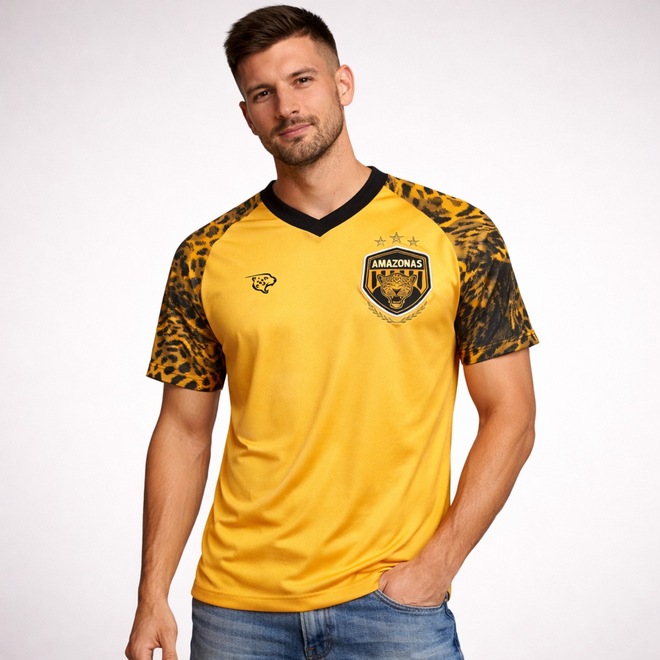 Mostre sua garra dentro e fora de campo com a camisa do Amazonas FC, inspirada na força e imponência da onça, símbolo do clube. O visual em amarelo vibrante com detalhes em preto transmite personalidade, enquanto as mangas com grafismos que remetem às manchas da onça criam um design marcante e exclusivo. Confeccionada em poliéster leve e respirável, a peça garante excelente ventilação, conforto térmico e secagem rápida, ideal para o dia a dia, treinos ou para torcer com estilo. A modelagem proporciona caimento confortável e versátil, combinando perfeitamente com looks esportivos ou casuais.