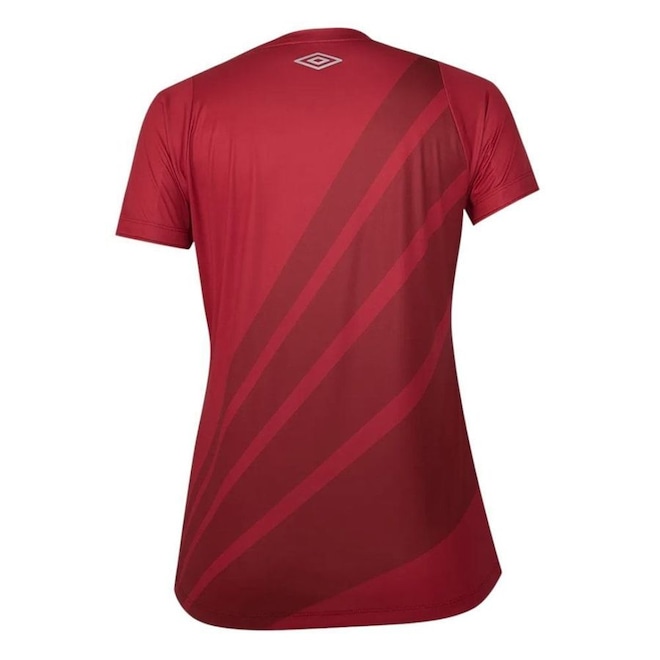 O Athletico Paranaense celebra 100 anos de glórias, e para marcar essa data especial, a Camisa Feminina Umbro Oficial 1 2024 Torcedora foi criada com uma combinação única de tradição e modernidade. Com design vermelho predominante e listras diagonais pretas representando os quatro ventos, este manto exibe todo o orgulho do Furacão. A modelagem fit garante um caimento elegante, enquanto a confecção em poliéster e elastano proporciona conforto e mobilidade. A gola V adiciona um toque de estilo ao uniforme das torcedoras apaixonadas.
