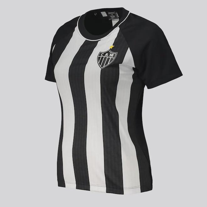 Composição: 100% PoliésterCor Predominante: PretaEscudo: EstampadoGênero: FemininoClube: Atlético MineiroOrigem: NacionalManga: CurtaGola: CarecaDimensões aproximadas (A x L):P: 59 x 44 cmM: 61 x 46 cmG: 63 x 48 cmGG: 65 x 50 cm