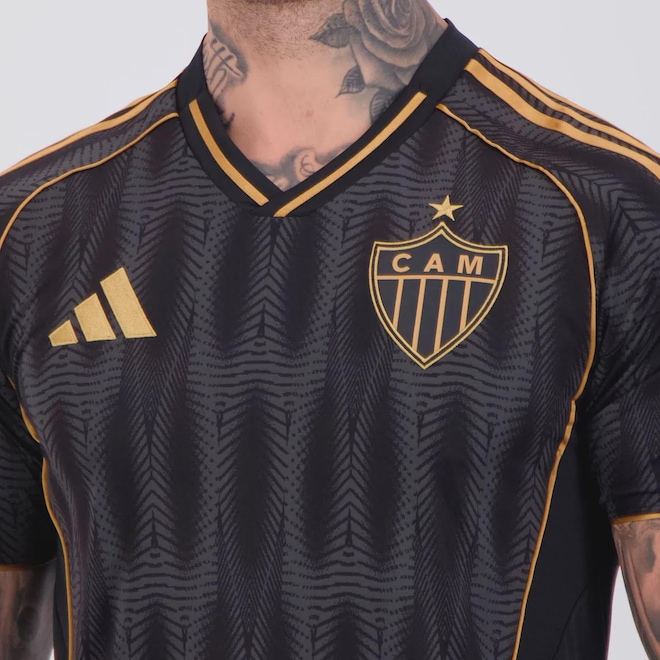 HULKHulk é potência e habilidade em um só jogador. Com arrancadas explosivas, físico imponente e um chute avassalador, é uma ameaça constante para qualquer defesa. Seja marcando golaços ou distribuindo assistências, sua presença em campo impõe respeito e decide jogos!TecnologiaAeroready: Sistema que controla o excesso de umidade do corpo, garantindo a rápida secagem do suor durante os exercícios.Composição: 100% PoliésterCor predominante: PretaModelo: TorcedorOrigem: NacionalGênero: MasculinoEscudo: BordadoClube: Atlético MineiroManga: CurtaGola: VDimensões aproximadas (A x L):P (S): 70 x 47 cmM (M): 72 x 51 cmG (L): 75 x 53 cmGG (XL): 77 x 56 cmEG (2XL): 80 x 61 cmEEG (3XL): 82 x 68 cm