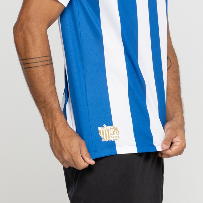 O mascote Leão e as tradicionais cores azul e branco são algumas das marcas registradas do clube.A Oficial 2 da temporada 23 está no tamanho certo pra vestir o torcedor apaixonado com o padrão e qualidade Umbro.O tecido em poliéster possui traminhas abertas que ajudam na absorção do suor com leveza e frescor. Sua gola é de ótimo acabamento nas cores do clube com tira interna em tecido que ajuda a diminuir o desconforto do atrito da costura.Na parte interna da peça a frase comemorativa: "Avaí meu Avaí. Há 100 Anos, Já Nasceste Campeão" eterniza o orgulho de pertencer ao clube catarinense.Além disso, as listras tradicionais nas cores do Avaí aliado ao nobre escudo valorizam a peça.Chegou a sua vez, vista a sua e comemore em grande estilo dentro e fora dos estádios. Compre já!