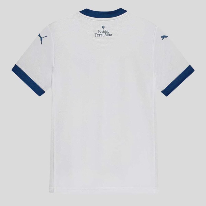 A Puma apresenta a camisa I do Bahia para a temporada 2025, uma homenagem à rica cultura baiana e à força feminina da “Terra Mãe do Brasil”. Com modelagem regular, a peça é branca e traz estampa sublimada inspirada nas rendas dos trajes das baianas. A gola V e os punhos ganham contraste em azul, assim como os logos da Puma. O escudo oficial do clube aparece bordado no peito, e a frase “Bahia, Terra Mãe” reforça a identidade cultural. Confeccionada em poliéster, oferece conforto, respirabilidade e muito estilo ao torcedor.TecnologiaDryCell: Sistema composto por materiais altamente funcionais que levam o suor para longe da pele, ajudando a manter o corpo fresco e seco durante os exercícios.Composição: 100% PoliésterCor predominante: BrancaModelo: TorcedorGênero: Unissex Idade: JuvenilEscudo: BordadoClube: BahiaManga: CurtaGola: VDimensões aproximadas (A x L):08 ANOS: 48 x 37 cm10 ANOS: 54 x 39 cm12 ANOS: 57 x 44 cm14 ANOS: 62 x 47 cm16 ANOS: 68 x 50 cm