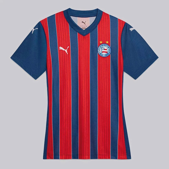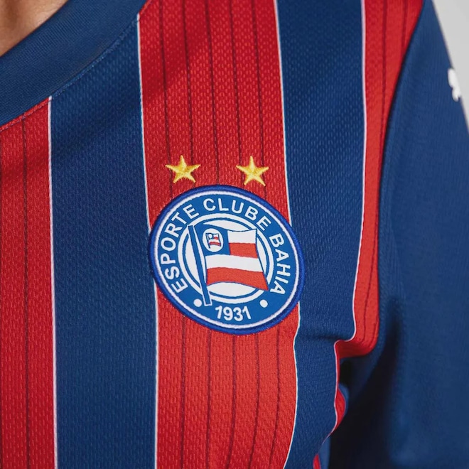 EVERTON RIBEIROEverton Ribeiro, o maestro, é pura elegância e visão no meio-campo. Com dribles suaves, passes milimétricos e leitura de jogo impecável, dita o ritmo e cria magia em cada toque. Especialista em jogadas decisivas, é o cérebro criativo que transforma futebol em arte!TecnologiaDry Cell: Mantém o suor longe da pele, enquanto os recursos de fluxo de ar anatomicamente colocados oferecem uma superior regulagem de temperatura para manter o corpo seco e fresco durante o uso.Composição: 100% PoliésterClube: BahiaCor predominante: AzulModelo: TorcedorGênero: FemininoOrigem: NacionalEscudo: BordadoManga: CurtaGola: VDimensões aproximadas (A x L):PP (XS): 64 x 43 cmP (S): 65 x 44 cmM (M): 66 x 47 cmG (L): 67 x 51 cmGG (XL): 70 x 55 cmEG (XXL): 81 x 64 cmEEG (3XL): 83 x 78 cmEEEG (4XL): 85 x 81 cm