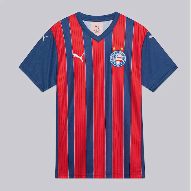 CAULYCauly é o maestro moderno, unindo técnica e intensidade. Com visão apurada, dribles curtos e passes precisos, dita o ritmo no meio-campo. Versátil e decisivo, sabe equilibrar criatividade e entrega, tornando-se o elo perfeito entre defesa e ataque. Um talento único! TecnologiaDryCell: Sistema composto por materiais altamente funcionais que levam o suor para longe da pele, ajudando a manter o corpo fresco e seco durante os exercícios.Composição: 100% PoliésterCor predominante: AzulModelo: TorcedorGênero: MasculinoOrigem: NacionalEscudo: BordadoClube: BahiaManga: CurtaGola: VDimensões aproximadas (A x L):PP (XS): 70 x 46 cmP (S): 72 x 48 cmM (M): 74 x 51 cmG (L): 75 x 57 cmGG (XL): 78 x 60 cmEG (XXL): 79 x 68 cmEEG (3XL): 82 x 71 cmEEEG (4XL): 84 x 73 cm