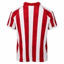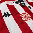 O modelo apresenta o tradicional design com listras verticais em vermelho e branco, que reforça a identidade histórica do clube. No peito, o destaque fica para o escudo do Bangu aplicado em patch, agregando mais qualidade, durabilidade e autenticidade à peça. A camisa conta com gola redonda com acabamento reforçado, proporcionando conforto e um visual esportivo clássico. O design também inclui detalhes gráficos discretos nas faixas vermelhas, trazendo um toque moderno sem perder a essência tradicional do uniforme.
