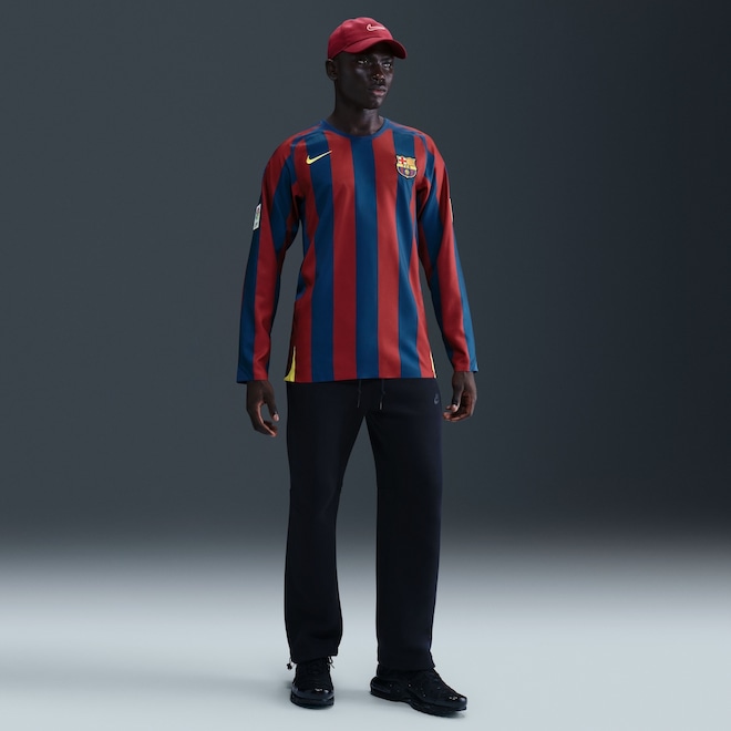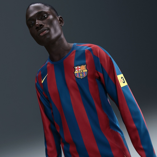 Esta camisa Reedição parece ter saído diretamente do baú de memórias. Com cores, logotipos e outros detalhes clássicos, esta releitura homenageia uma lenda do FC Barcelona.