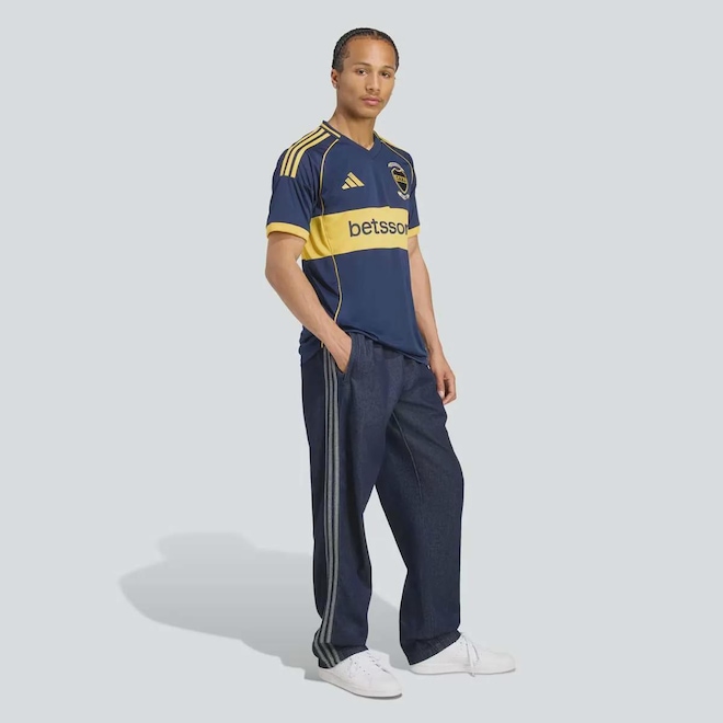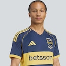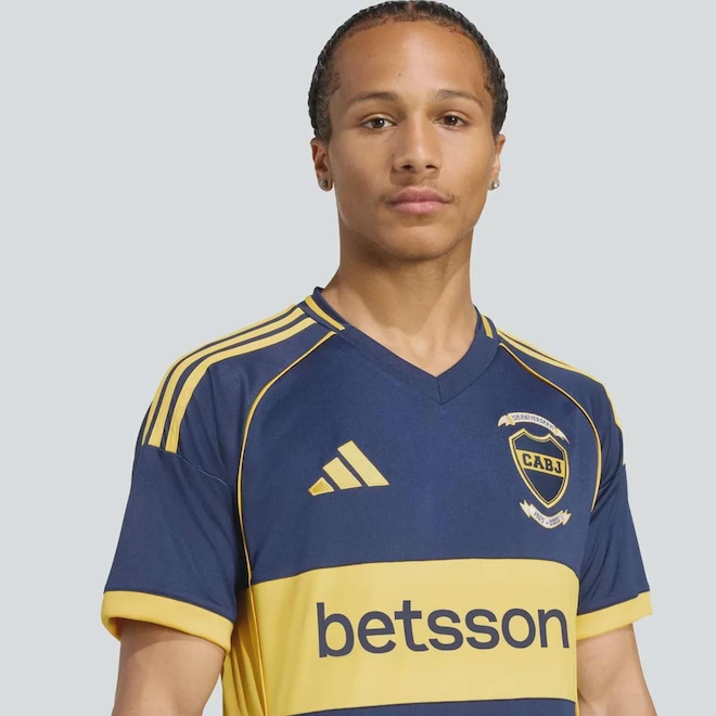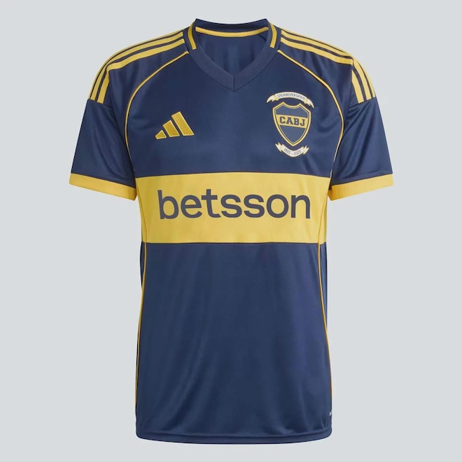 Tecnologia AEROREADY: Sistema que controla o excesso de umidade do corpo, garantindo a rápida secagem do suor durante os exercícios. Composição: 100% Poliéster Cor predominante: Azul Modelo: Torcedor Gênero: Masculino Clube: Boca Juniors Origem: Nacional Escudo: Bordado Manga: Curta Gola: V Dimensões aproximadas (A x L): PP (XS): 68 x 45 cm P (S): 70 x 47 cm M (M): 73 x 51 cm G (L): 75 x 55 cm GG (XL): 78 x 58 cm EG (2XL): 80 x 65 cm