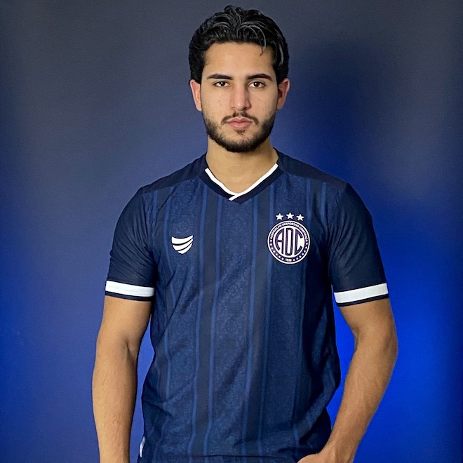 A terceira camisa do Confiança para 2025 exibe o azul profundo como protagonista, refletindo a identidade do clube com elegância e personalidade. Com gola V e detalhes em branco, o modelo combina um visual clássico com modernidade discreta.