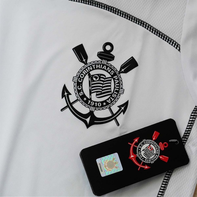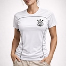 Confeccionada em tecido Dry poliéster, a peça oferece alta respirabilidade, secagem rápida e toque macio, mantendo o corpo seco mesmo nos momentos de maior intensidade. Sua modelagem feminina levemente acinturada valoriza o caimento no corpo, garantindo conforto sem limitar os movimentos. O design predominante branco traz elegância e versatilidade, enquanto os recortes laterais com costuras contrastantes adicionam sofisticação e um visual esportivo moderno. O escudo estampado no peito reforça a identidade do Timão com estilo discreto e marcante.