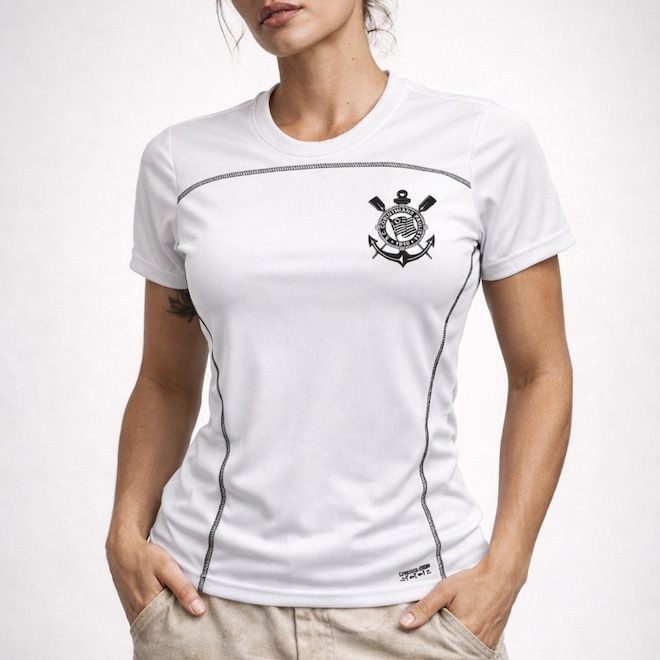 Camisa do Corinthians Baby Look Recortes Lateral Coimbra - Feminina - Foto 1