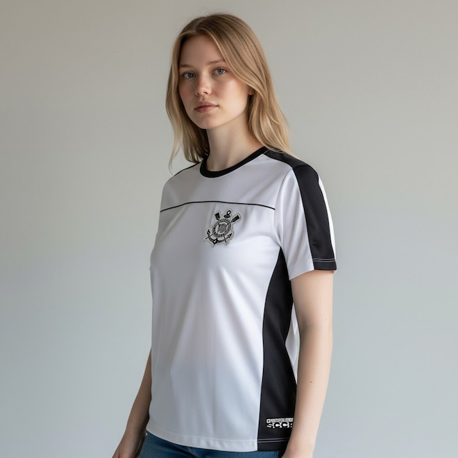 Camisa Corinthians Baby Look Recortes Lateral - Feminino