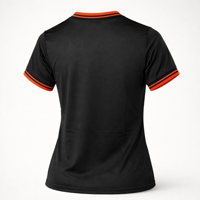 A Camisa Corinthians Feminina Preta com Detalhes Laranja é perfeita para quem busca um visual diferenciado, moderno e cheio de personalidade, sem deixar de lado o orgulho de vestir as cores do Timão. Confeccionada em poliéster, a peça oferece leveza, respirabilidade e secagem rápida, garantindo conforto durante todo o dia, seja em momentos casuais, atividades esportivas ou na torcida.