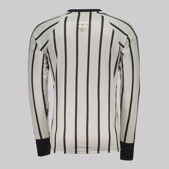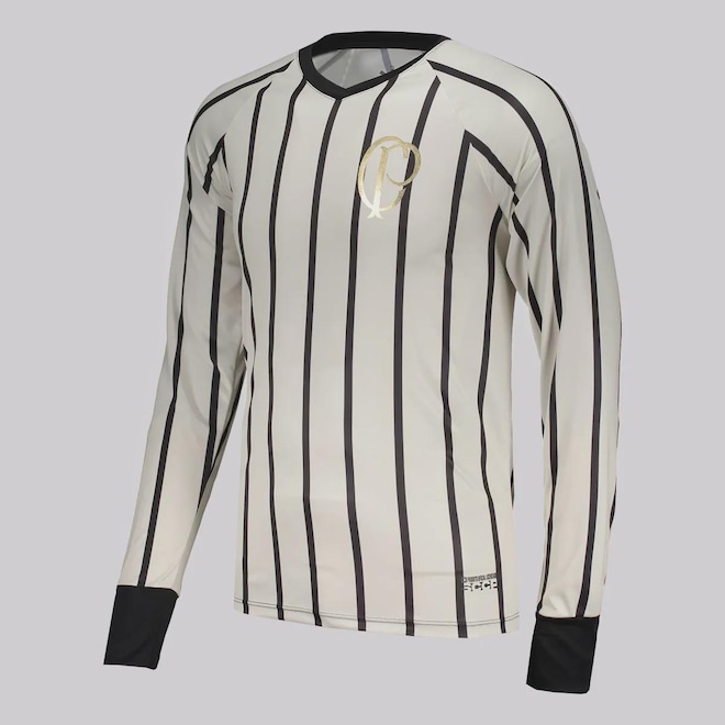 A Camisa Corinthians Listrada é ideal para os torcedores que valorizam tradição com estilo. Feita em poliéster leve, tem design off white com listras pretas, manga longa e escudo estampado em destaque. Sofisticada e confortável, é perfeita para o dia a dia.