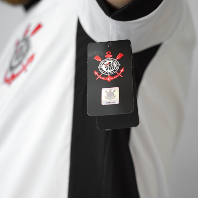 Com recortes laterais em preto que criam um contraste marcante, a peça ganha personalidade sem perder a simplicidade. O escudo bordado reforça o orgulho corinthiano com acabamento de qualidade, enquanto o tecido em poliéster garante leveza, conforto e respirabilidade.