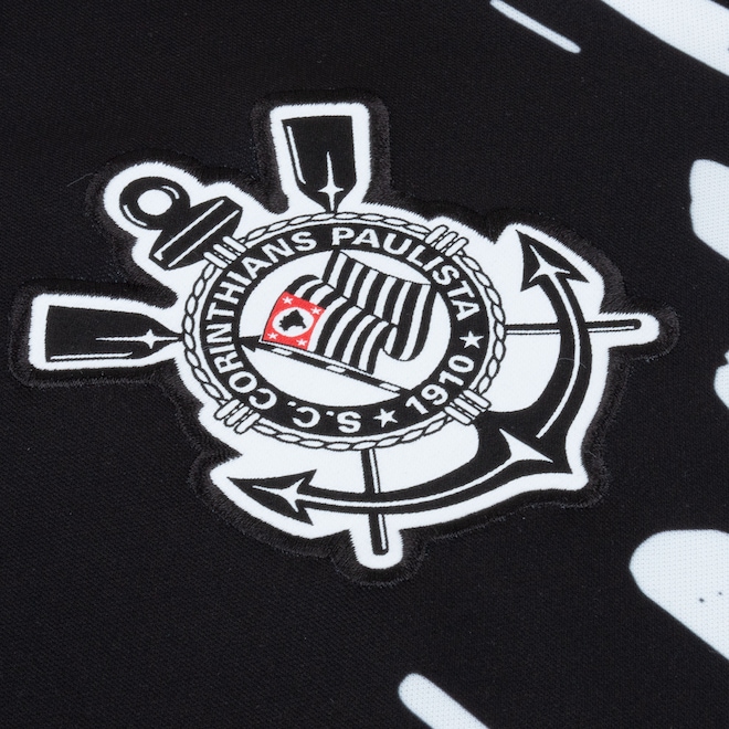 Já a estampa nas cores do “Timão” valoriza o visual esportivo com o icônico escudo e o “swoosh” que confere seu padrão de qualidade em cada detalhe.