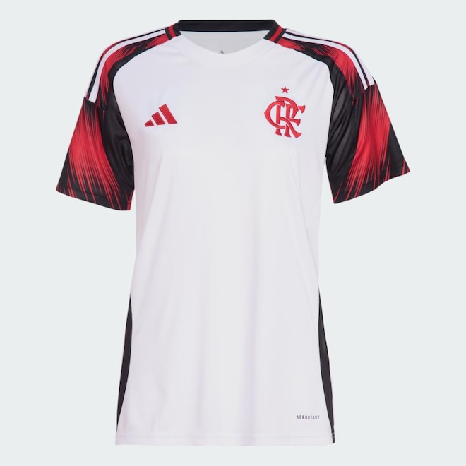 Uma homenagem ao mascote do Flamengo, Urubu. Exibindo detalhes inspirados nas penas em suas mangas, esta camisa adidas do segundo uniforme vem nas ousadas cores branca e preta. Criada para manter os torcedores confortáveis, ela combina o tecido AEROREADY antissuor com painéis em malha elástica para ventilação. O escudo do clube bordado sobre o coração permite que seu orgulho pelo futebol voe alto. Este produto é 100% feito com materiais reciclados. Ao escolher o reciclado, podemos reutilizar materiais já criados, o que ajuda a reduzir o desperdício e a nossa dependência de recursos finitos, além de reduzir a pegada dos produtos que fabricamos.