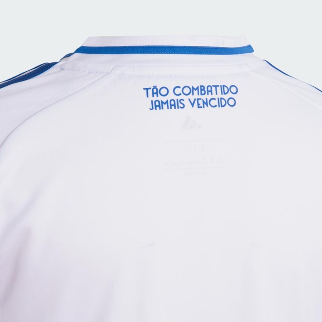 Mostre seu amor pelo Cruzeiro com esta camisa infantil adidas do segundo uniforme do time. A estampa ousada de ondas sonoras disposta na parte frontal é inspirada no lendário hino do clube. Nos bastidores, a tecnologia AEROREADY de controle de umidade mantém o corpo seco e confortável. No peito, uma versão costurada do escudo do time comemora a dedicação eterna ao futebol. Produto feito 100% com materiais reciclados. Ao reutilizar materiais que já foram criados, ajudamos a reduzir os resíduos, a nossa dependência em recursos não renováveis, bem como a pegada dos produtos que fabricamos.