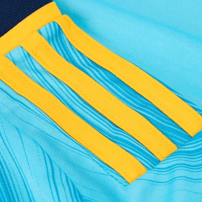 Confeccionada com tecido tecnológico AEROREADY em material de alto desempenho que mantém a temperatura corporal regulada, permitindo que as crianças se concentrem apenas no jogo.