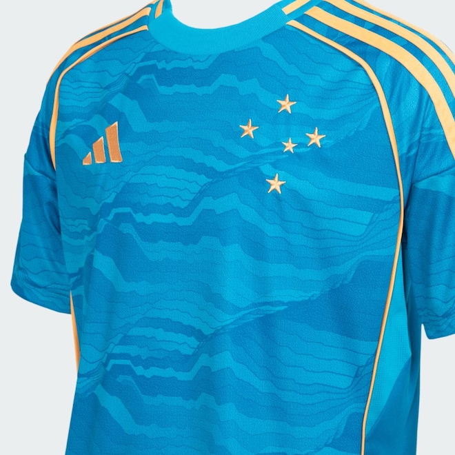 Esta camisa adidas do Cruzeiro para juvenil homenageia o Rio São Francisco, que dá vida. Repetindo-se na frente e nas mangas, uma estampa sutil traça o curso d'água, desde sua nascente no estado de Minas Gerais, sede do clube. Bordado em laranja inspirado no pôr do sol, o escudo do clube se destaca no peito. O AEROREADY, que gerencia a umidade, garante que o gráfico diferenciado seja a única coisa que flui.
