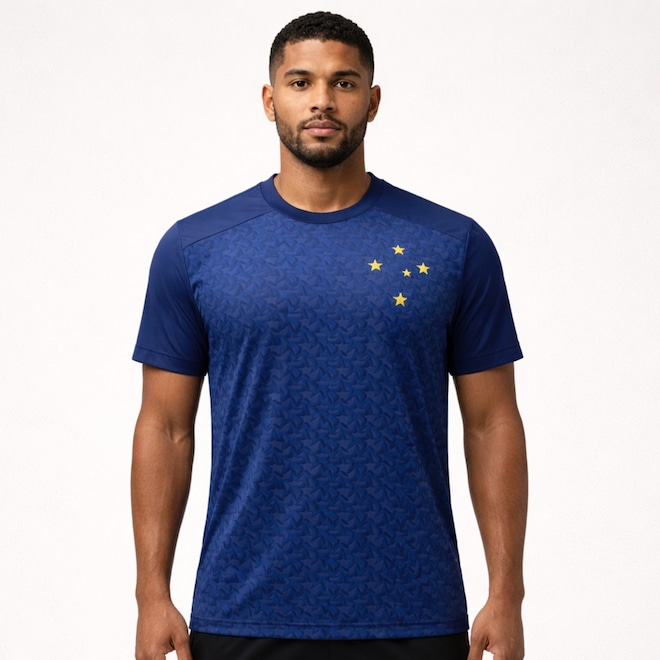 Com cor predominante em azul e detalhes sofisticados em dourado, traz o escudo estampado no peito como símbolo de orgulho pelo clube. Sua gola redonda garante conforto e versatilidade, tornando-a perfeita para o uso no dia a dia. Confeccionada em poliéster leve, é ideal para treinos, atividades físicas ou para acompanhar os jogos do Cruzeiro com muito estilo e praticidade.