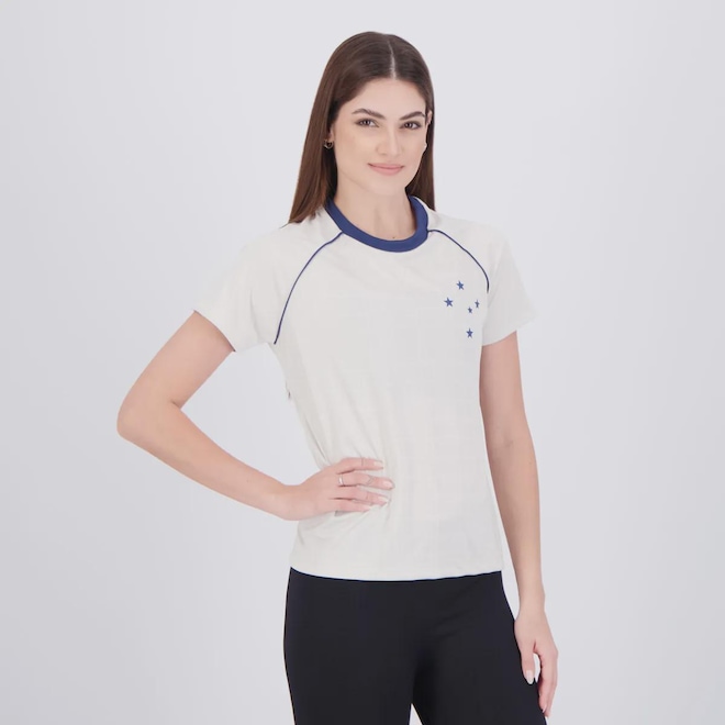Composição: 100% PoliésterCor predominante: Off WhiteEscudo: EstampadoGênero: FemininoOrigem: NacionalClube: CruzeiroManga: CurtaGola: CarecaDimensões aproximadas (A x L):P: 62 x 46 cmM: 64 x 48 cmG: 68 x 50 cmGG: 70 x 52 cm