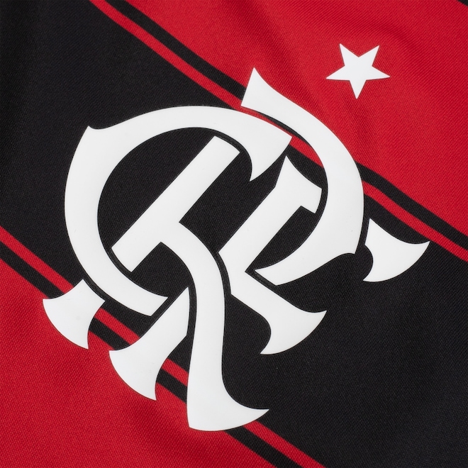 O escudo do Flamengo estampado no peito reforça o orgulho pelo clube, enquanto o corte clássico proporciona ótimo caimento.