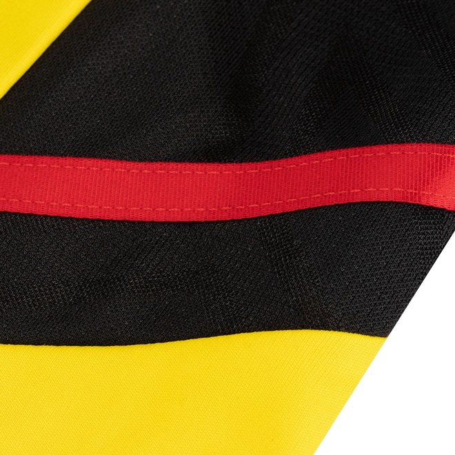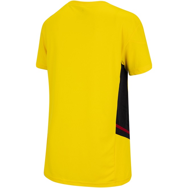De ótimo caimento que permite uma mobilidade natural, a peça possui gola em “v” com tira interna em tecido que ajuda a diminuir o desconforto do atrito da costura, detalhes em preto e o icônico escudo do “Mengão” em lugar de destaque, ideal para as fãs apaixonadas demonstrarem seu favoritismo em dias de jogos ou ocasiões casuais.