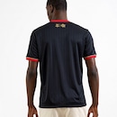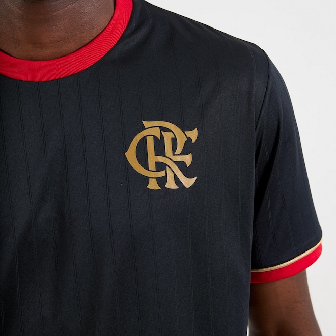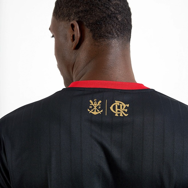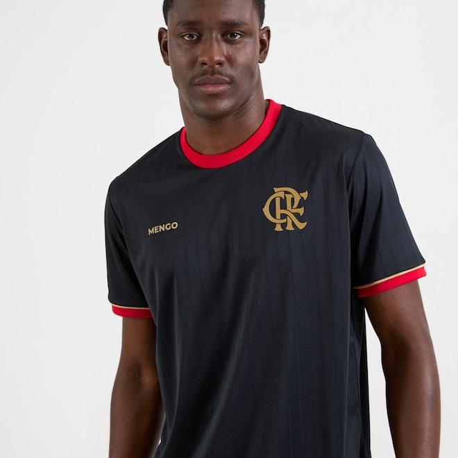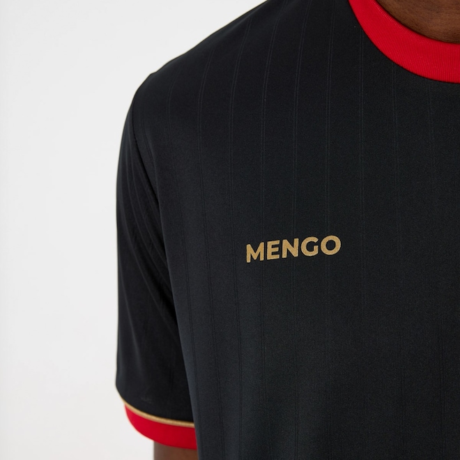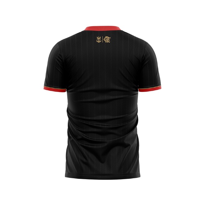 A Camisa Flamengo Mistura Preto tem por seus detalhes em vermelho e preto nas mangas, por seu destaque na estampa do seu lado esquerdo o escudo do Flamengo e no seu lado direito a sua descrição "mengo". Essa camisa são para os amantes torcedores vestirem sua paixão pelo Mengão.