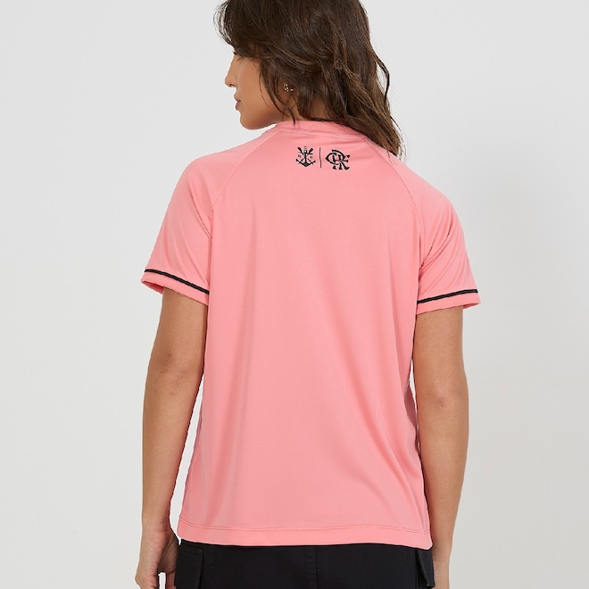 Seu design moderno em tom rosa vibrante ganha destaque com o escudo central em preto, símbolo de força e tradição. Os detalhes em preto distribuídos pela camisa criam um contraste elegante e reforçam a identidade rubro-negra. Confeccionada em poliéster leve e resistente, oferece conforto e durabilidade para acompanhar você em qualquer ocasião. O escudo estampado com acabamento de qualidade garante autenticidade e orgulho em cada partida.