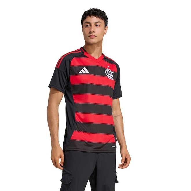 Demonstre sua paixão pelo Mengão com a Camisa do Flamengo I 25 adidas Masculina Torcedor.