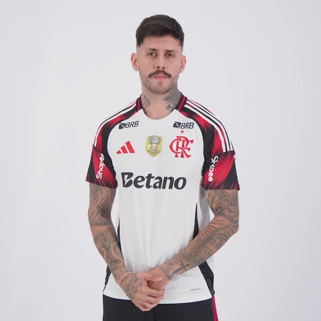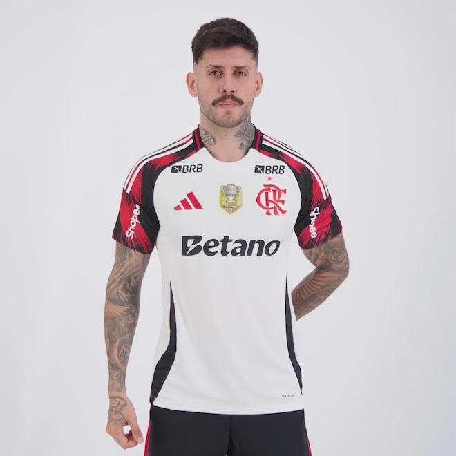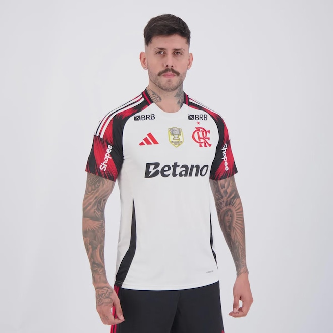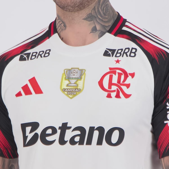Composição: 100% PoliésterCor predominante: BrancaModelo: TorcedorGênero: MasculinoOrigem: NacionalEscudo: BordadoClube: FlamengoManga: CurtaGola: CarecaDimensões aproximadas (A x L):P (S): 72 x 51 cmM (M): 74 x 53 cmG (L): 76 x 54 cmGG (XL): 79 x 57 cmEG (2XL): 82 x 61 cm