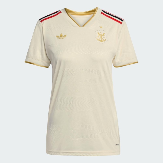 Com 130 anos de futebol brilhante na esteira do CR Flamengo, esta elegante terceira camisa da adidas homenageia as origens do clube na remo. Ele faz uma declaração com um emblema vintage, detalhes em dourado e argolas sutis criadas a partir de um relevo inspirado nas remadas. AEROREADY garante que a umidade excessiva é coisa do passado para os fãs leais.