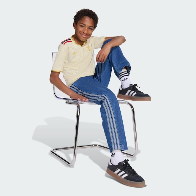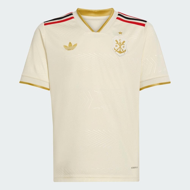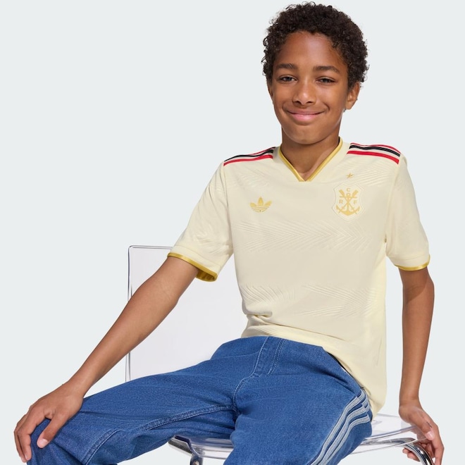 Com 130 anos de futebol brilhante na esteira do CR Flamengo, esta terceira camisa adidas para juniores honra as origens de remo do clube. Ele faz uma declaração com um emblema vintage, detalhes em dourado e argolas sutis criadas a partir de um relevo inspirado nas remadas. AEROREADY garante que a umidade excessiva é coisa do passado para os jovens fãs.
