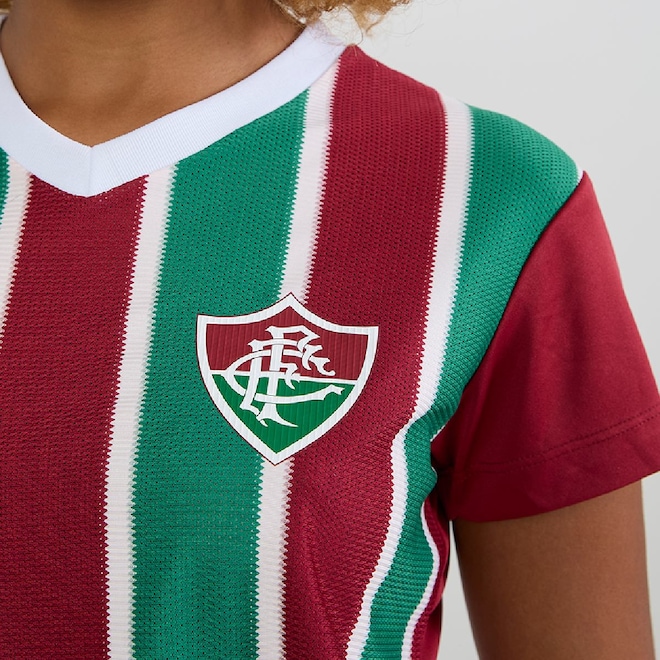 Mostre sua paixão pelo Tricolor com muito estilo! Este cropped feminino é confeccionado em poliéster leve e respirável, ideal para o dia a dia ou para torcer com atitude. A parte frontal traz as tradicionais listras verticais em verde, branco e grená, com o escudo oficial do Fluminense estampado no lado esquerdo do peito, garantindo autenticidade e orgulho. As costas são lisas, sem estampa, proporcionando um visual clean e moderno. O corte cropped valoriza o look com um toque esportivo e feminino.