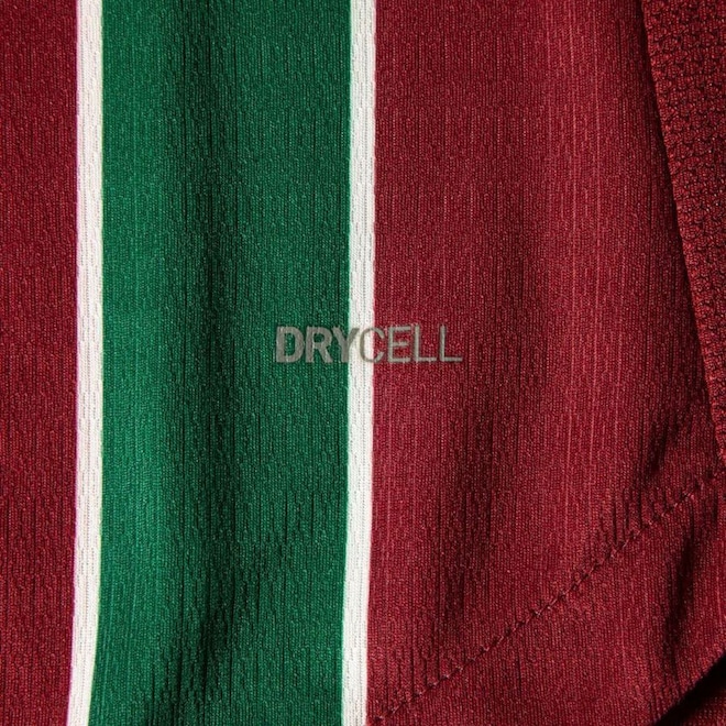 Escudo oficial do Fluminense emborrachado e texturizado no peito (lado esquerdo)