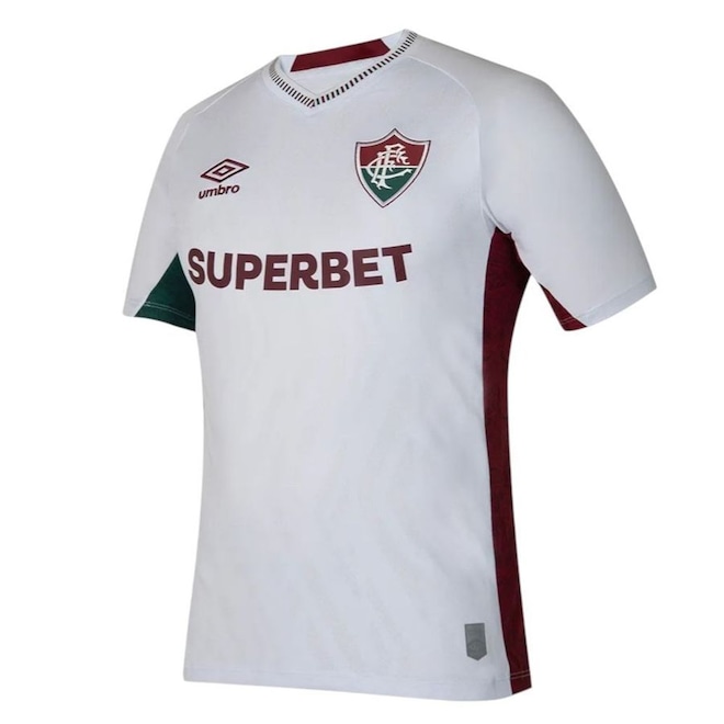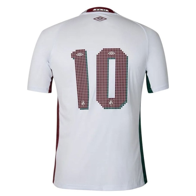 A Camisa Umbro Fluminense II 2025 Masculina é ideal para os torcedores que valorizam tradição e estilo em um só manto. Com visual branco e detalhes clássicos em verde e grená, esta peça apresenta faixas laterais inspiradas nas cores do clube, grafismos que remetem à história tricolor e modelagem fit que garante caimento moderno e elegante. A gola V texturizada, as mangas raglan e o escudo bordado no peito elevam o visual. Nas costas, o número 10 em estilo pixelado e o apelido “Flu” na nuca reforçam a identidade do clube. Uma camisa que une design e sentimento em cada detalhe.